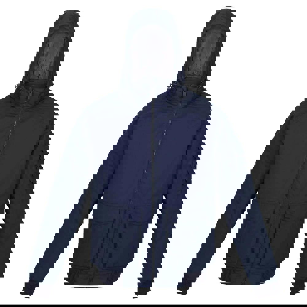 Finished with long sleeves, ribbed cuffs and a ribbed hem, it fastens through the front with a full zip. The grown-on hood sits concealed when not in use and adjusts with a toggle. Storage includes two lower pockets with flap closure and snap fastening, a handwarmer pocket and an internal pocket.