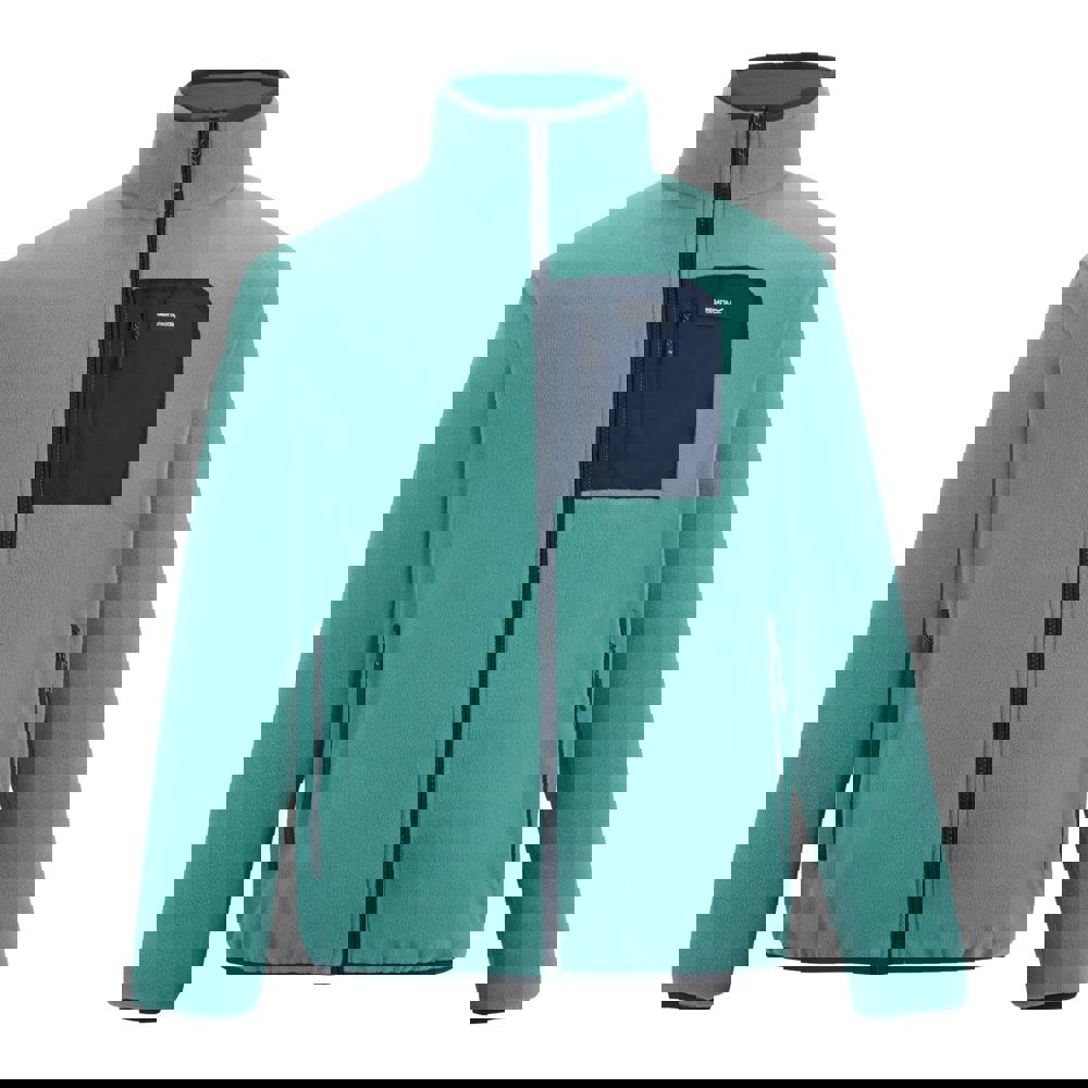 This full zip fleece jacket is made from 70% polyester and 30% recycled polyester. It uses a mix of microfleece, poplin and stretch fabrics, with a 210gsm weight and a soft handle. The design includes contrast colour panels, a logo and a patch, finished with a fused stand up collar.