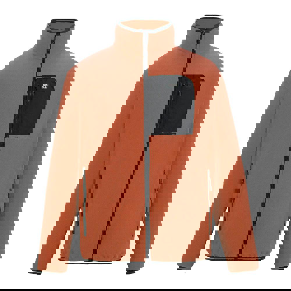 This full zip fleece jacket is made from 70% polyester and 30% recycled polyester. The fabric combines microfleece, poplin and stretch, with a 210gsm weight and a soft handle. Finished in Brick/Black, it uses contrast colour detailing with logo and patch elements for a defined look.