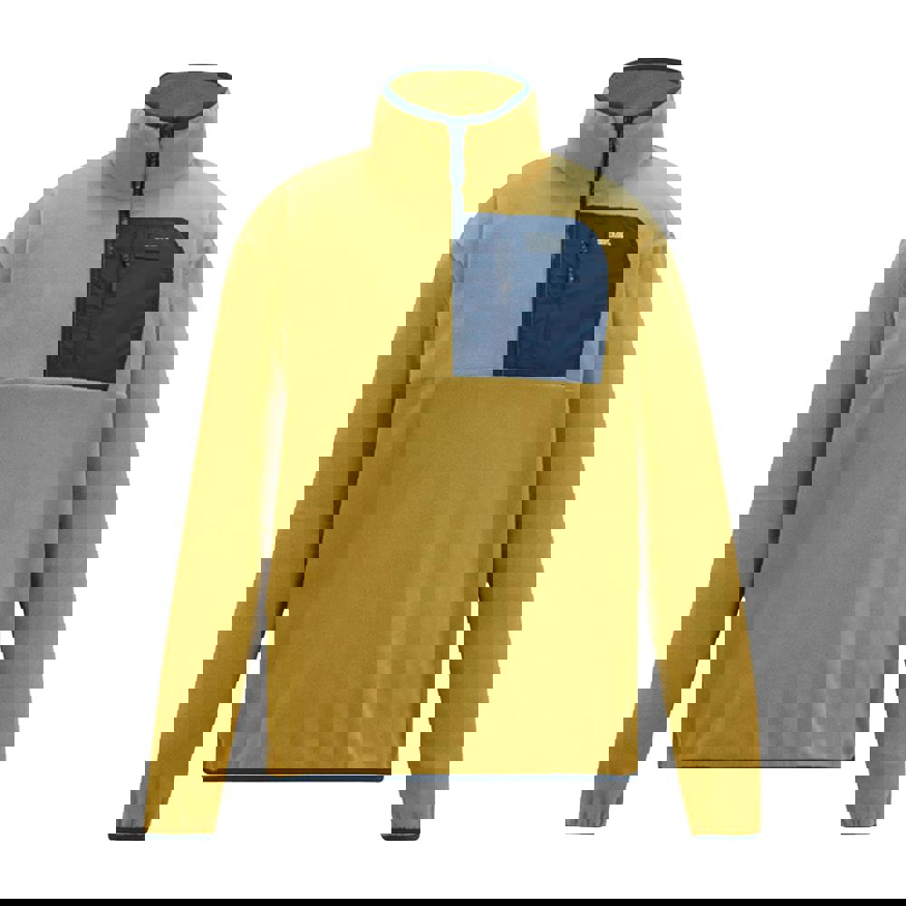 This half zip fleece top is made from microfleece with a soft-touch finish, using 70% polyester and 30% recycled polyester. It comes in a contrast colour design in Wood Brown and Navy, with a long-sleeved cut for easy layering.