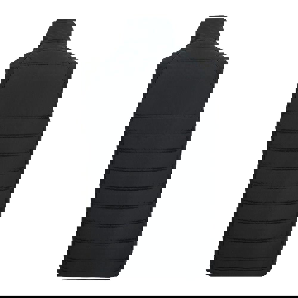The sleeveless cut makes it suitable for layering, while stretch binding at the cuffs and hem provides a neat edge. Storage is arranged with a zipped chest pocket and two lower pockets, and the full zip fastening keeps the front clean and practical. An embroidery access detail is included.