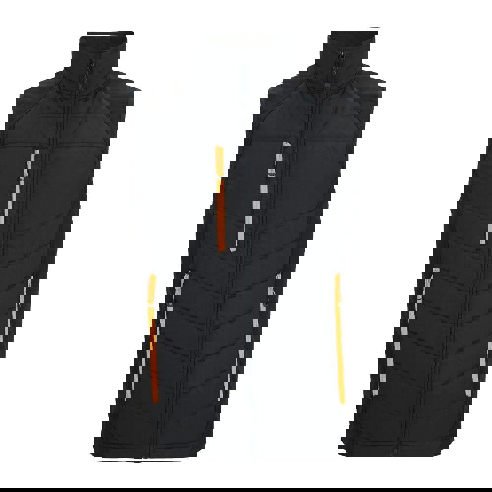 This men’s full zip gilet from Regatta comes in black/orange pop with a plain finish and a standing collar. Made from 100% polyester, it uses Extol Stretch and micro poplin fabric with added stretch for flexibility, alongside water repellent fabric technology.