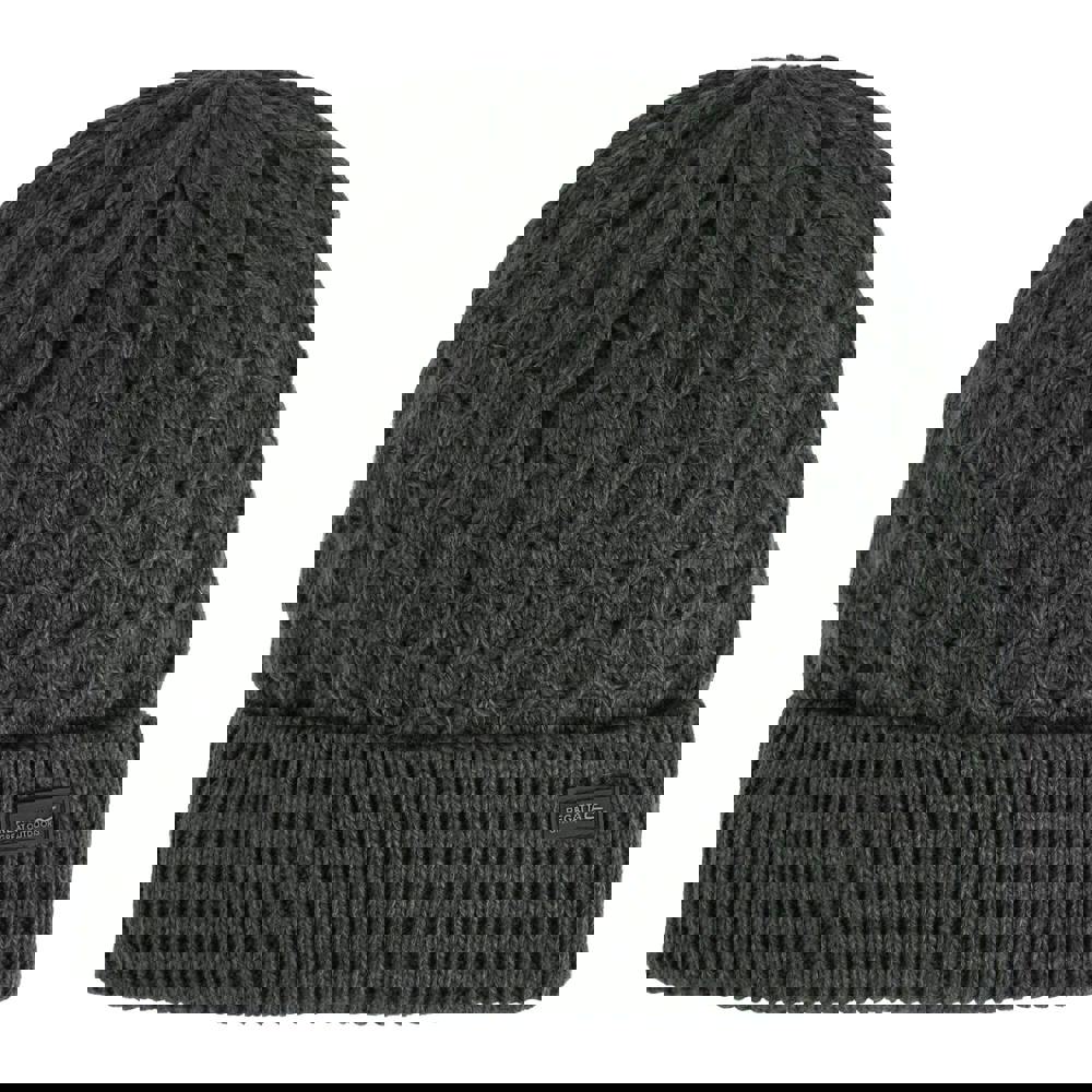 The Regatta Men’s Harrell Beanie in ash grey is a practical cold-weather hat designed for everyday wear. It features a cable knit and honeycomb texture for a classic look, finished with a turned-up cuff for a neat, structured shape.