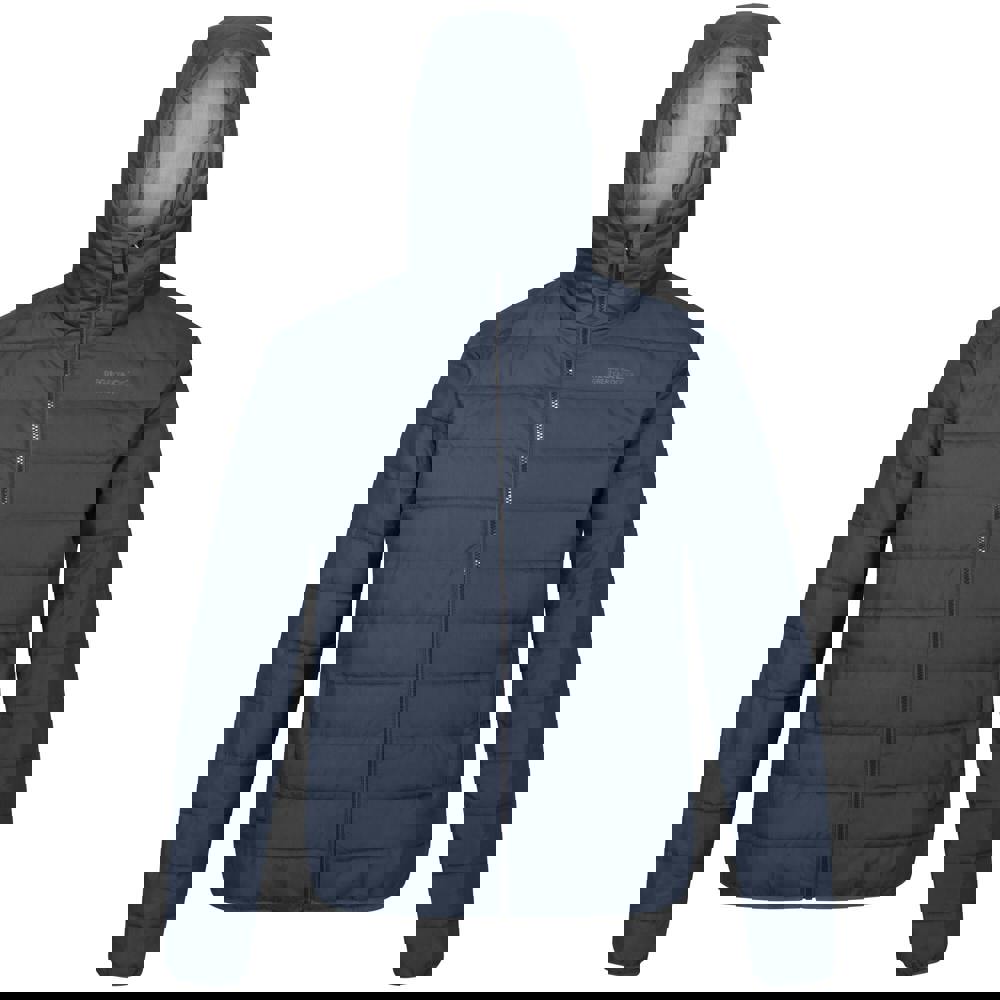 This men’s Helfa jacket from Regatta comes in navy and uses 100% polyester with a down-touch Warmloft fabric. The quilted construction is paired with a DWR finish for a water-repellent outer. An insulated yet lightweight build makes it suitable for everyday outerwear and layering.