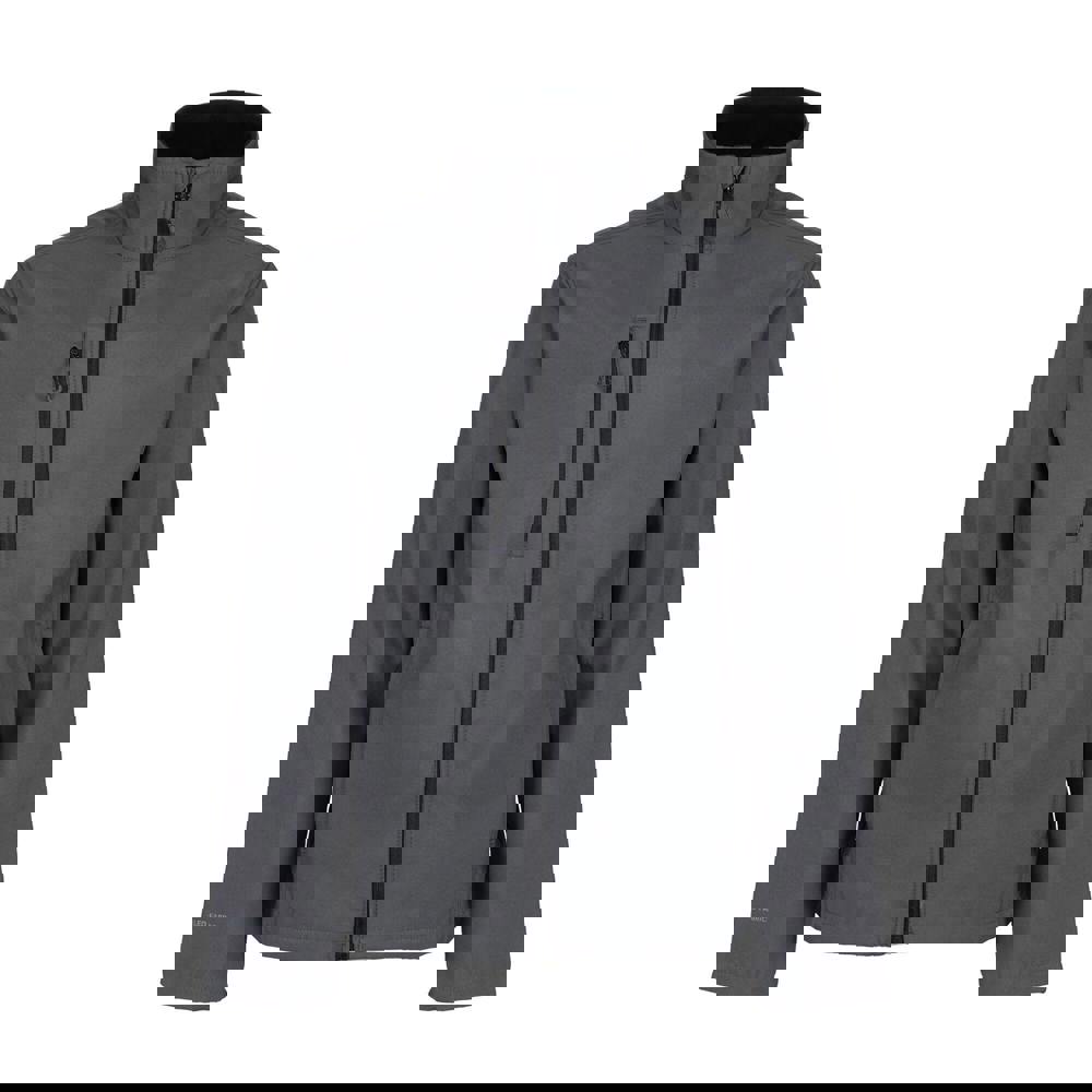 This softshell jacket is made from 100% recycled polyester in a double-layer, soft-touch fabric with a plain finish and 270gsm weight. It has a durable water repellent finish and is showerproof, wind resistant and windproof, with quick-dry and lightweight properties for practical everyday wear.