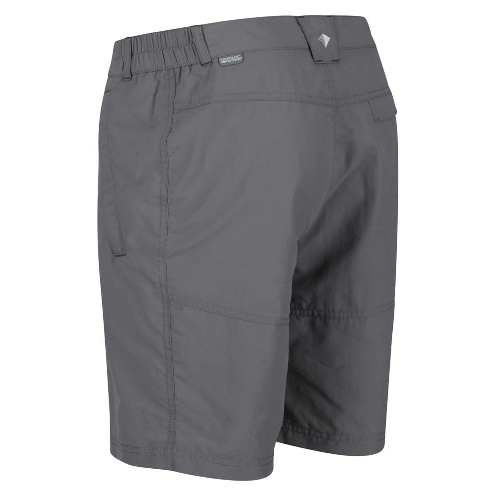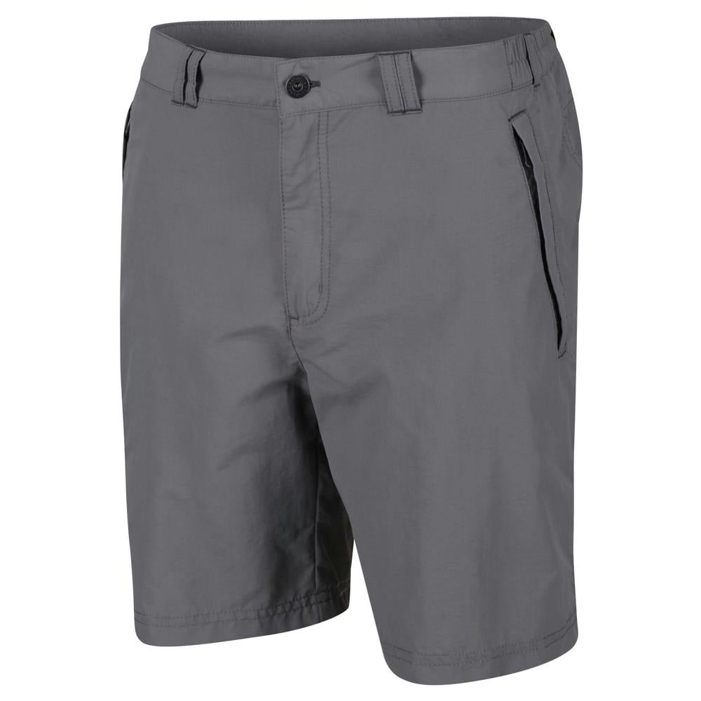 Regatta Leesville II walking shorts are made from 100% polyamide in a stretch woven fabric with a plain finish. The waistline is part elasticated and includes belt loops, with a button and zip fastening for a secure fit. A DWR finish and wrinkle resistant fabric technology support everyday wear, while the lightweight, quick dry and showerproof construction suits outdoor use.