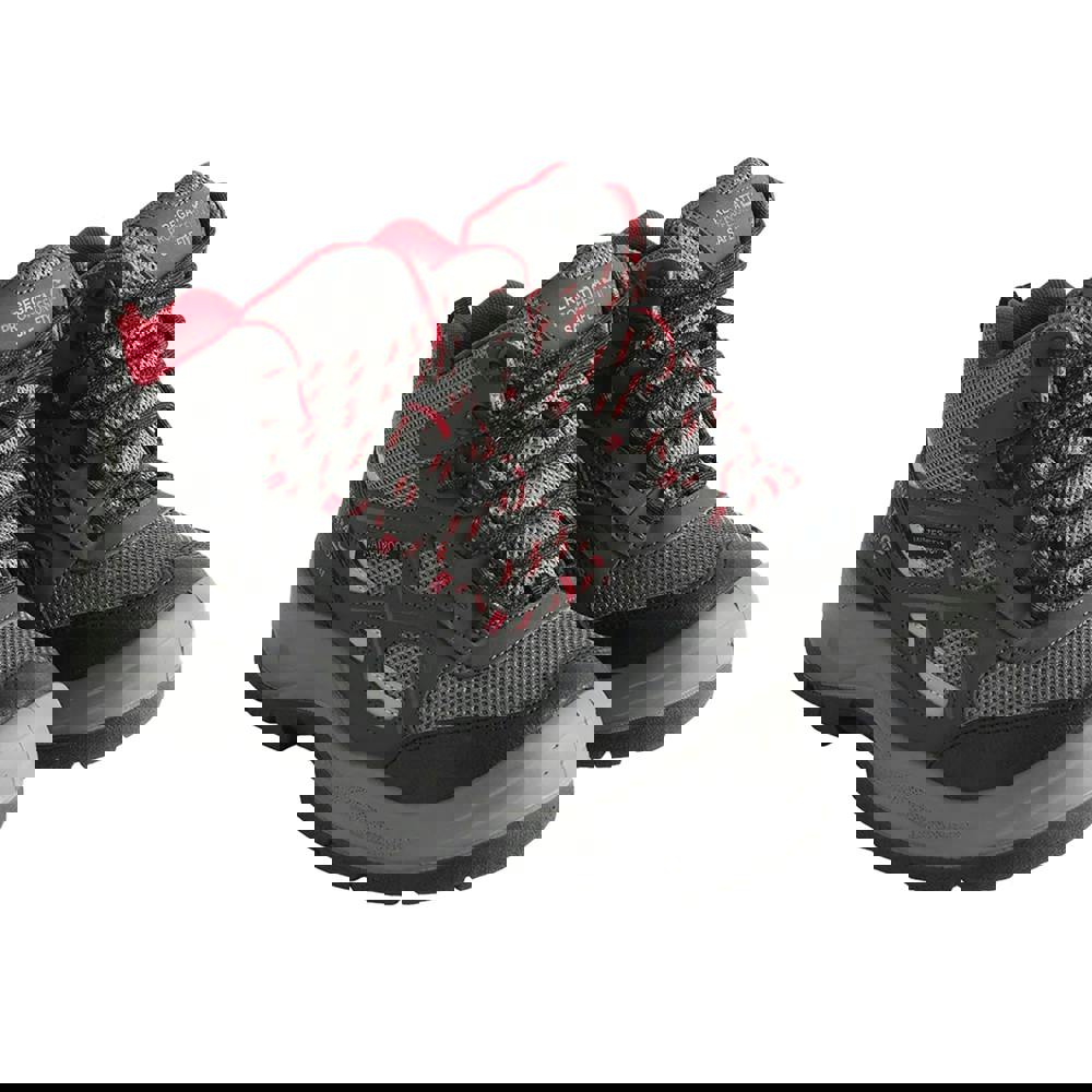 These mid cut safety boots combine a plain finish with logo detailing and reflective accents. The lace-up fastening runs through seven eyelets, and the round toe is reinforced with a steel toe cap. A flat profile supports everyday wear where protective footwear is required.
