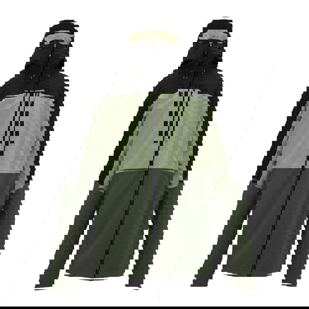 The Regatta Maland II waterproof jacket is made from 100% recycled polyester with a stretch finish and a mesh lining. In sage, black and dark khaki, it uses a colour block design with logo detailing and a 165gsm construction.