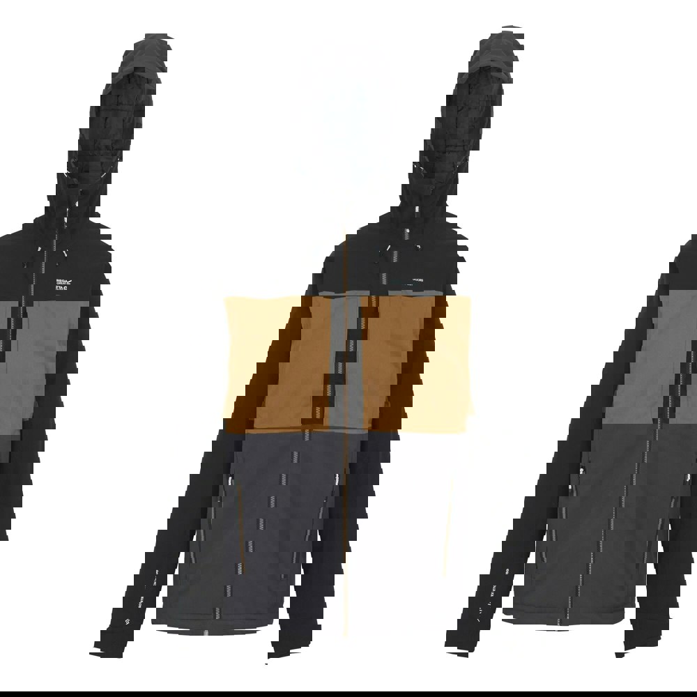 This insulated waterproof jacket is made from 100% polyester with a stretch fabric outer. The lining is padded and quilted, with Thermo-Guard insulated filling. A colour block design with logo detailing is paired with a hooded neckline and long sleeves for practical coverage.