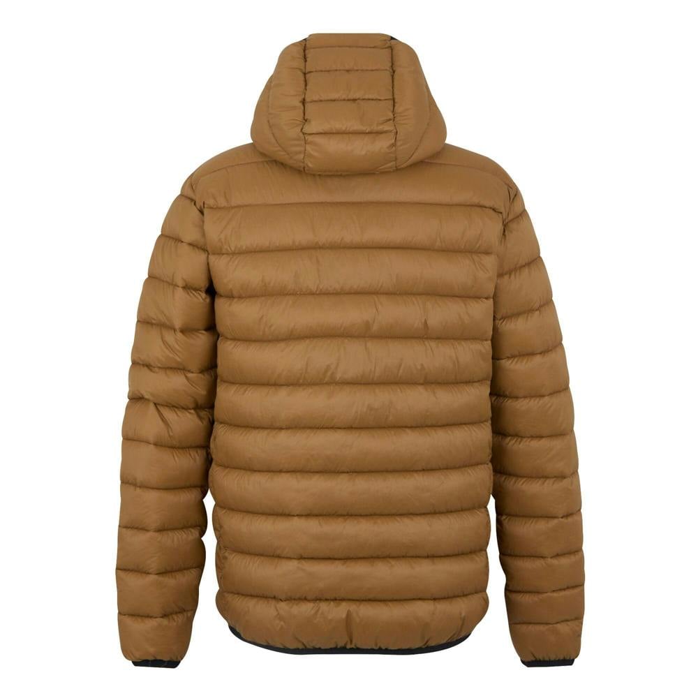This hooded padded jacket is made from 100% polyamide with a baffled construction and a synthetic down-touch feel. It has a lightweight build with an insulating finish and a DWR finish. The design includes a logo detail and a full zip fastening for straightforward wear.
