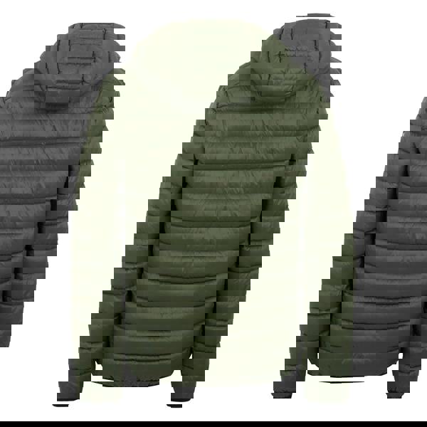 The Regatta Marizion jacket is made from 100% polyamide with a baffled construction and a synthetic down touch. Padded and lightweight, it includes a DWR finish and insulating fabric technology. The olive night design is finished with a logo detail and a grown-on hood for practical coverage.