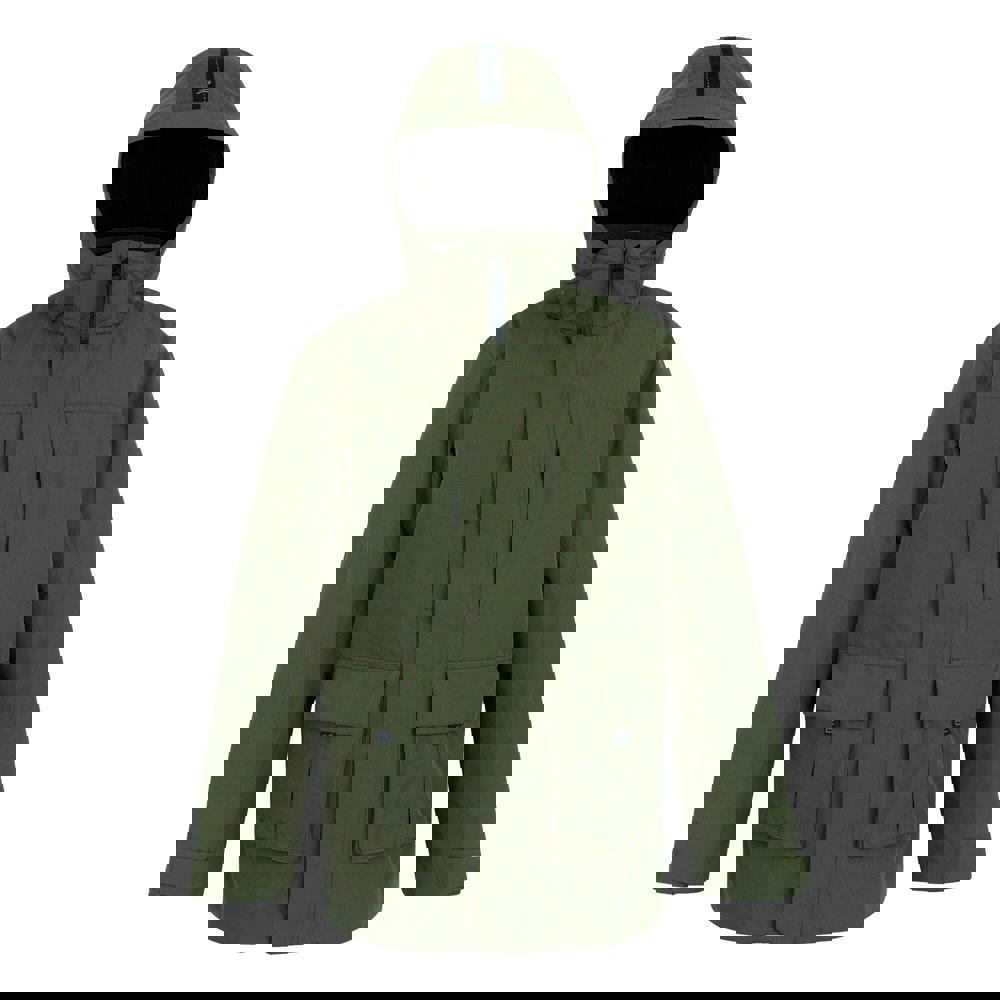 Built with Isotex 15000 fabric technology, it is waterproof, windproof and breathable, with a durable water repellent finish. Taped seams and taped details support weather protection, while the full zip fastening is covered by a stormflap. The hood is adjustable and detachable with a fleece lining, and the long sleeves are finished with adjustable cuffs with hook and loop straps, plus inner ribbed cuffs. The design is plain with logo detailing.