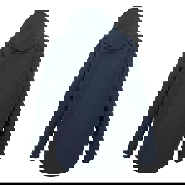 Regatta Mens Matt II Waterproof Jacket in navy is made from 100% recycled polyester with a mesh lining. The design includes logo and text detailing, with a 110gsm fabric weight. A standing collar and long sleeves create a clean, practical silhouette, while the packaway hood includes a toggle adjuster for quick changes in coverage.
