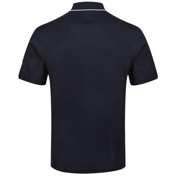 Cut for everyday wear, the Regatta Maverick V Active polo shirt brings a clean, plain finish to a classic collared silhouette. Made from 100% polyester piqué, it keeps the look smart while staying lightweight and breathable, with moisture-wicking and quick-dry properties for active days. A button-down collar and short sleeves give it a neat profile, while the button-up front is finished with a 3-button placket. Stretch, a soft-touch handle and ribbed cuffs complete the feel, and a logo detail adds a subtle branded note. Shown here in navy.