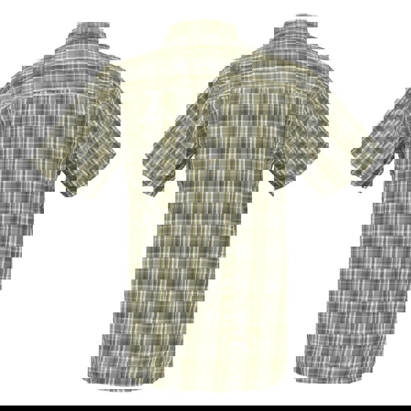 Regatta Mindano IX is a checked short-sleeved shirt in Golden Sand/Treetop with an all-over print and logo detailing. Made from 90% polyester and 10% viscose, it uses 100gsm fabric and includes moisture wicking and quick dry technology. A turn down collar and button-down fastening keep the look clean and structured for everyday wear.