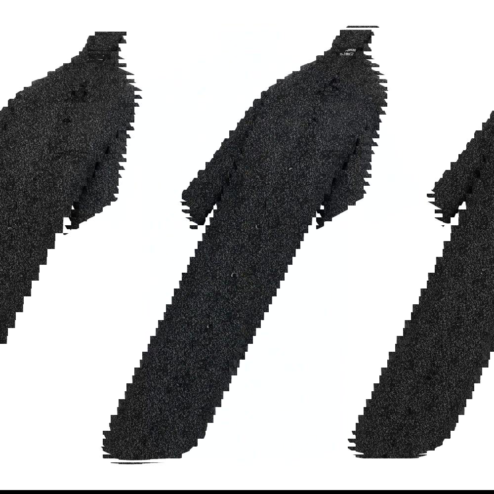 Regatta Mindano is a textured short-sleeved shirt in ash, finished with a logo detail. It fastens with a button-down front and is cut with a turn down collar for a clean, casual look. A single chest pocket adds a practical touch, while the lightweight, breathable fabric is specified as moisture wicking and quick dry.