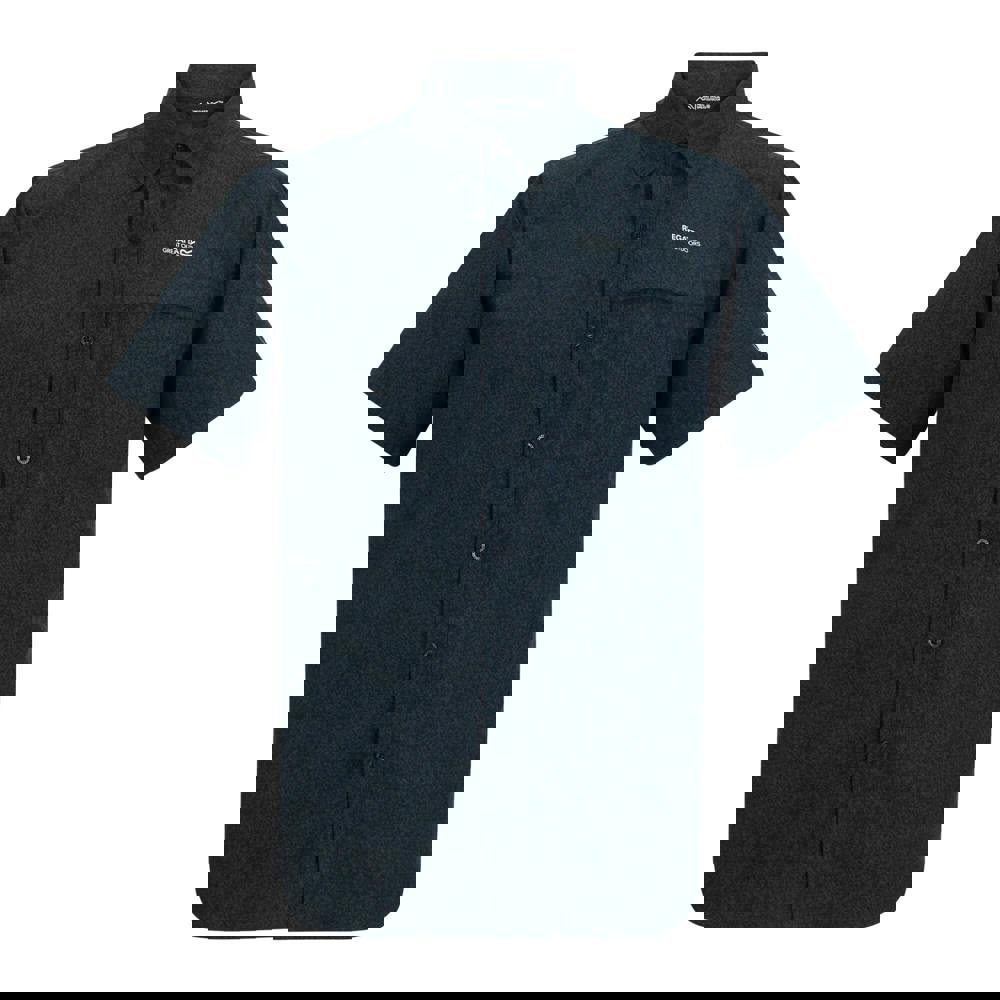 The Regatta Mindano textured shirt in Night Sky is a short-sleeved, button-down style with a turn down collar. Made from a 90% polyester and 10% viscose blend, it has a logo and textured design, plus a single chest pocket for a clean, practical finish.