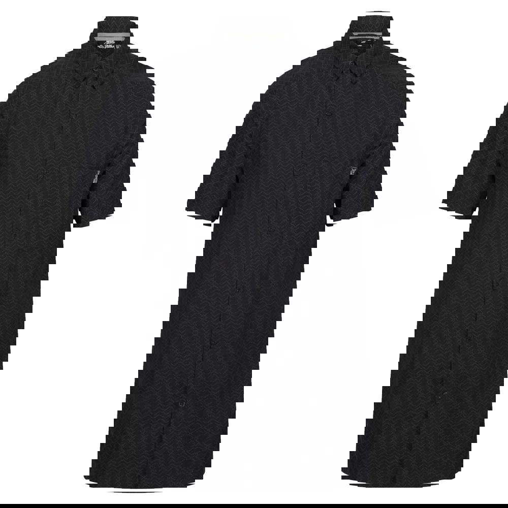 The Regatta Mens Mindano VIII Diamond short-sleeved shirt comes in black/ash with a checked, diamond and logo design. Made from 90% polyester and 10% viscose, it has a collared neckline and a button-down fastening for a clean, structured finish. A single chest pocket adds a practical detail, while contrast neck tape and a branded tab complete the look.