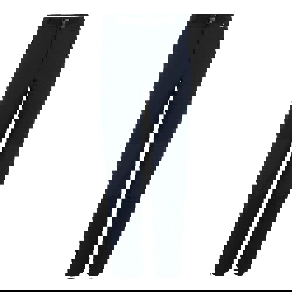 These Regatta Montorn walking trousers come in navy and are made from 100% polyester with stretch fabric. The design is plain with a logo and uses 155gsm material. Isoflex fabric technology is listed, alongside a durable water repellent finish and water repellent properties, with quick-dry performance.