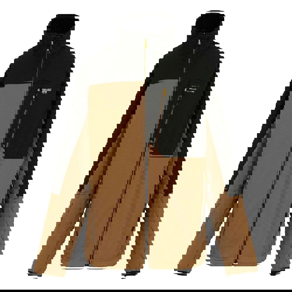 Built from a 330gsm fleece, pile and softshell fabric blend, this men’s Mountdale jacket combines a printed finish with a snug fit and long sleeves. The high-neck shape and articulated sleeves support ease of movement, while bound stretch cuffs give a neat, close edge at the wrist.