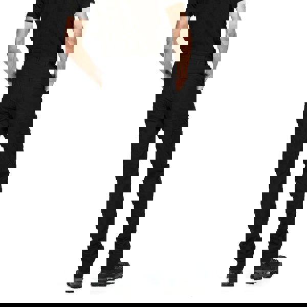 These men’s action trousers are made from polycotton with a 180 gsm fabric weight and a durable water repellent finish. A part elasticated waistband supports comfortable everyday wear, while belt loops allow use with a belt.