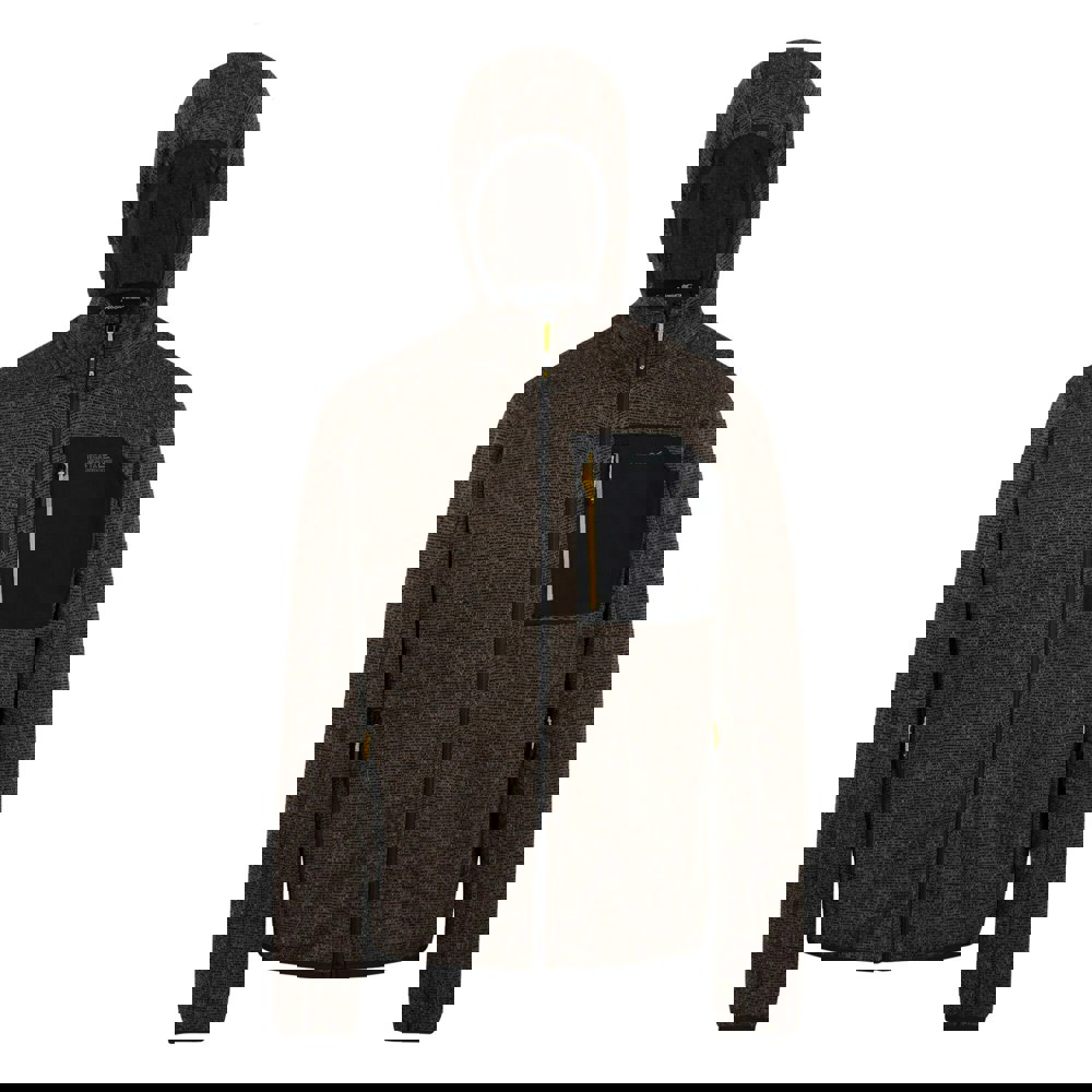 Regatta Newhill Marl full zip fleece jacket in nut brown, made from 100% polyester and produced using recycled materials. The 280gsm fabric has a brushed-back finish with a knit-effect marl texture and a logo design.