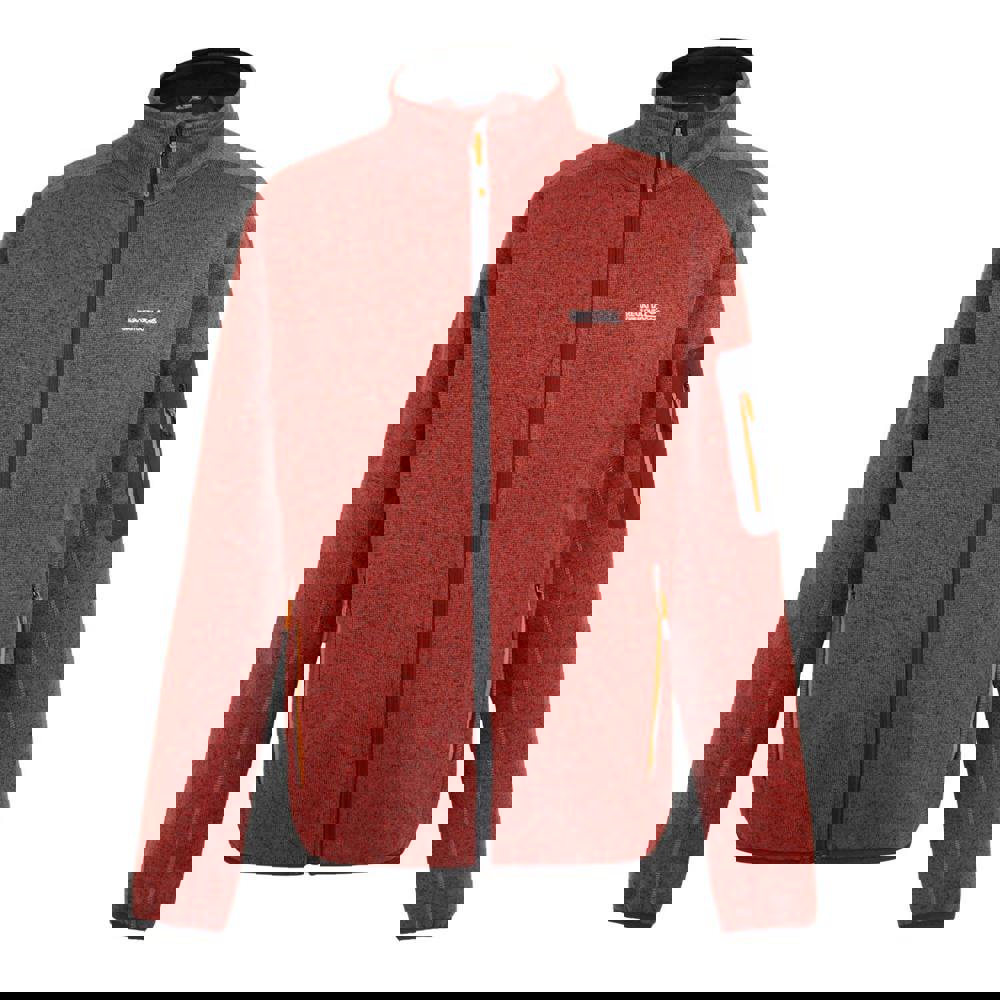 This men’s Newhill Marl fleece jacket is made from 100% recycled polyester and finished in a red ochre marl. The soft-touch fabric has a knitted fleece construction with a 250gsm weight and includes breathable, moisture-wicking fabric technology. A standing collar and long sleeves create a clean, practical silhouette for everyday wear.