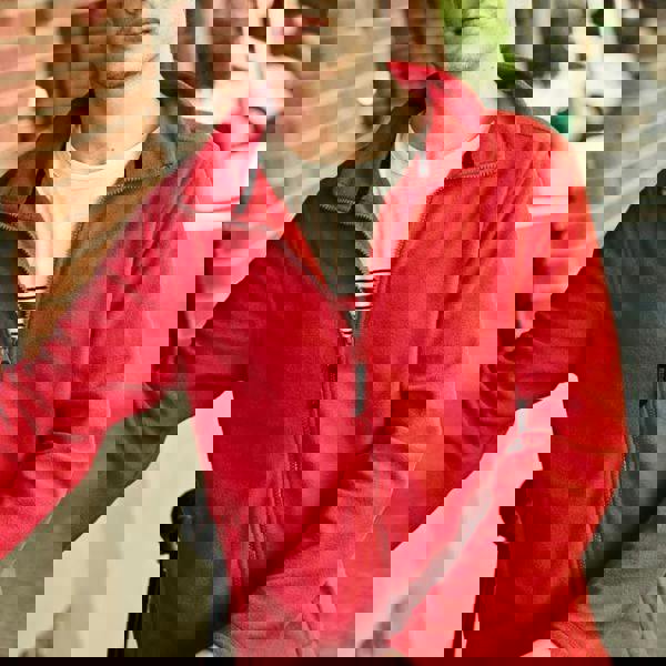 Fleece cuffs and an adjustable shockcord hem help keep the fit secure, while two zippered lower pockets provide a safe place for small essentials. Finished in classic red, it works well as a standalone fleece or as a mid-layer under outerwear.