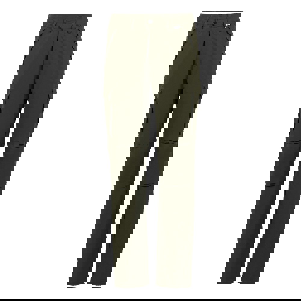 Regatta Questra cargo trousers are made from 100% recycled polyester with a stretch fabric and a plain finish. They fasten with a button and zip fly, and include belt loops for everyday wear.