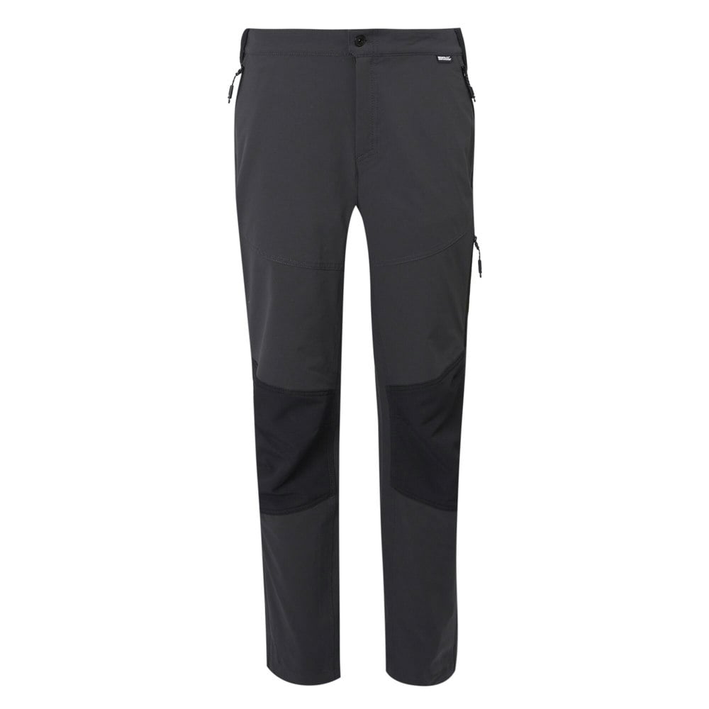 These men’s Questra V hiking trousers from Regatta come in ash and black, with a stretch fabric made from polyester and elastane. The design includes a logo and Isoflex fabric technology, with water-repellent and wind-resistant properties for weatherproof wear.