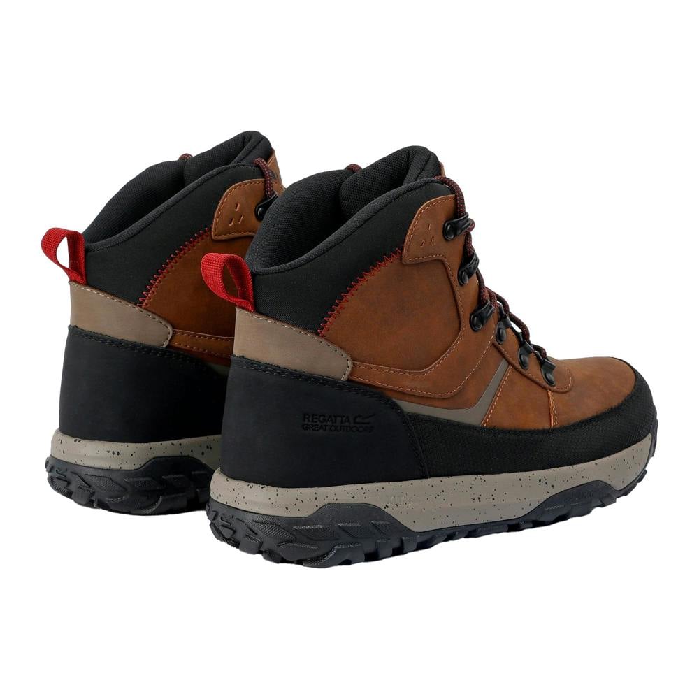 Regatta Renford walking shoes come in brown with Rio Red detailing and a printed design. The ankle-cut profile is finished with a round toe and lace-up fastening through six eyelets. A pull tab and platform sole complete the exterior.