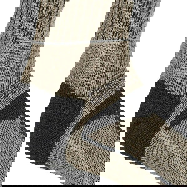 Regatta Samaris 3 Season socks come as a pack of two in Moccasin Brown and Briar Grey. The fabric blend combines acrylic, polyester, wool, polyamide and elastane, with anti-bacterial technology. A logo and stripe detail complete the look, while the ribbed cuff gives a secure finish.