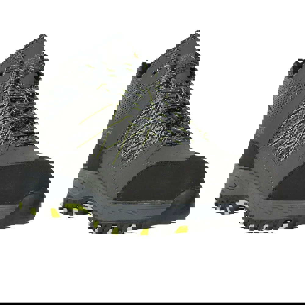 Regatta Sandstone safety boots are built with a mesh, nubuck and PU (polyurethane) upper, finished with a lace-up fastening through six eyelets. The low-cut profile and flat construction sit alongside a padded collar and padded tongue for added structure around the ankle and instep.