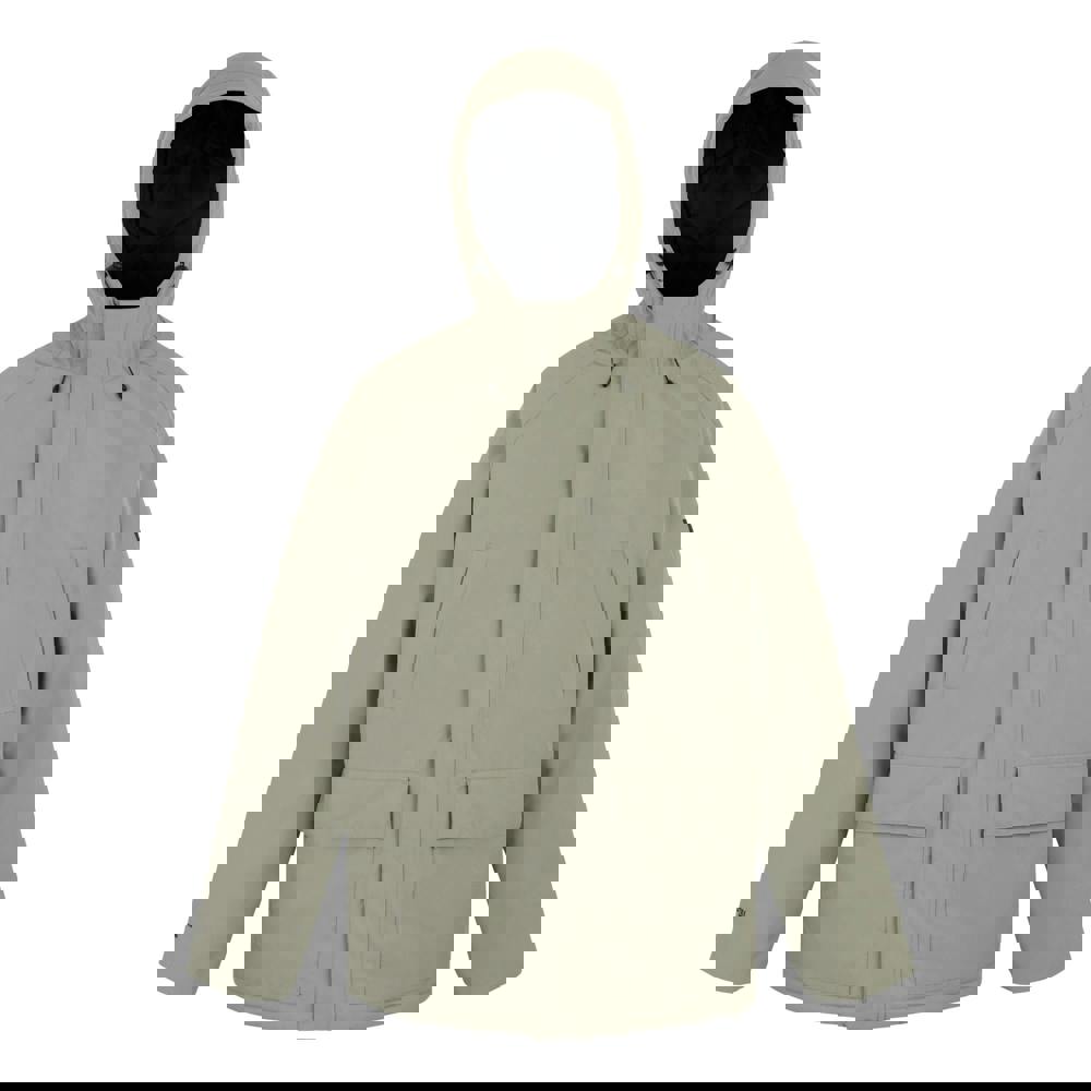 This insulated waterproof jacket is made from 100% polyester and uses recycled materials. It has a plain design with logo detailing, plus a hooded neckline with a standing collar for added coverage. The lining is quilted taffeta, with Thermo-Guard insulation for warmth.