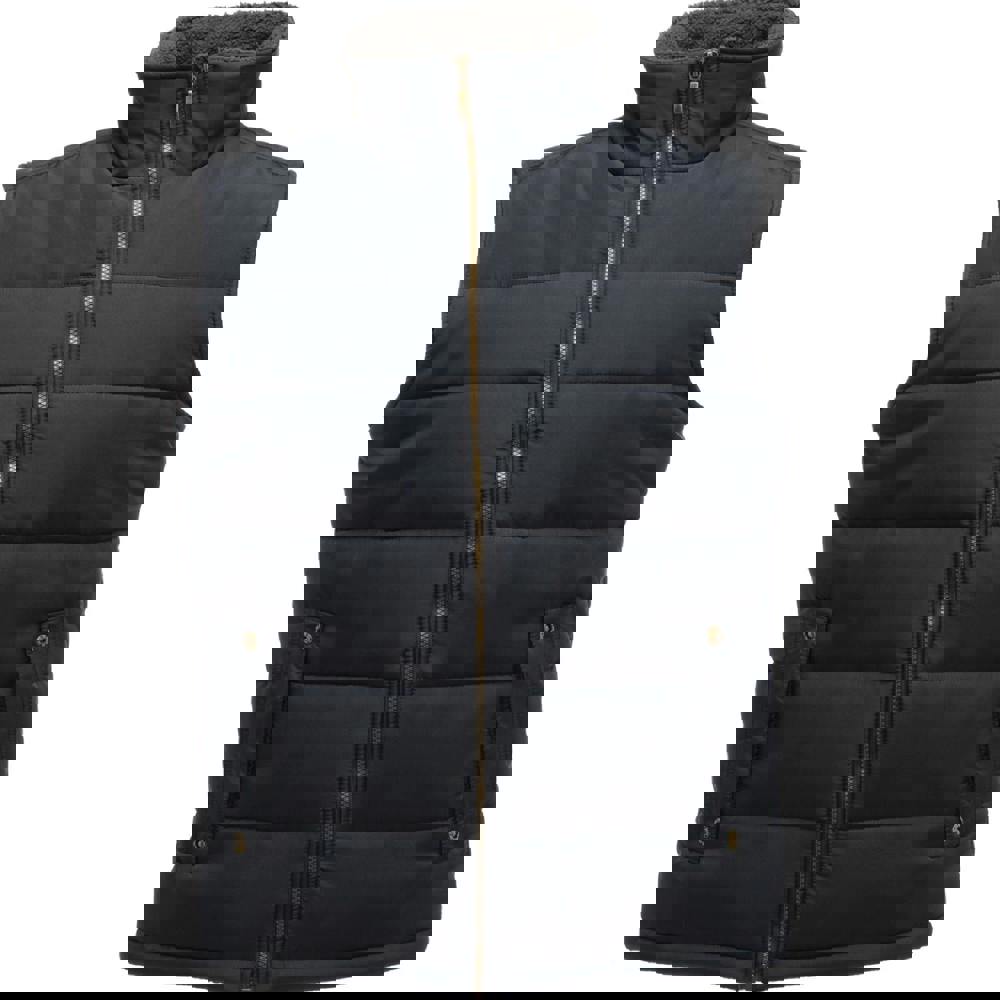 This insulated bodywarmer jacket is made from quilted, water repellent micro poplin and finished in navy blue. A high pile fleece collar lining adds a soft touch at the neckline, while Thermo-Guard insulation provides added warmth. Inside, a polyester taffeta lining gives a smooth feel for easy layering.