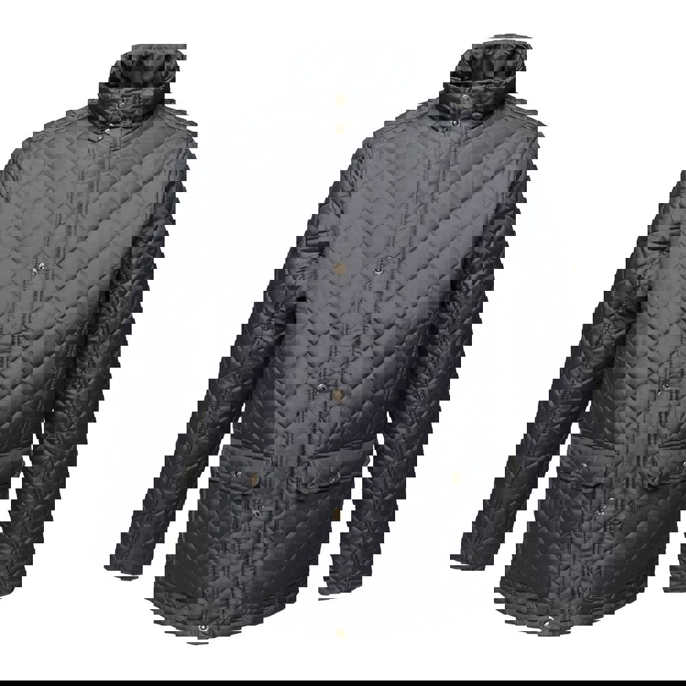 The Regatta Tyler jacket in navy is made from quilted, water repellent micro poplin with Thermo-Guard insulation. A polyester taffeta lining adds a smooth internal finish, while the quilted construction keeps the look clean and structured for everyday outerwear.