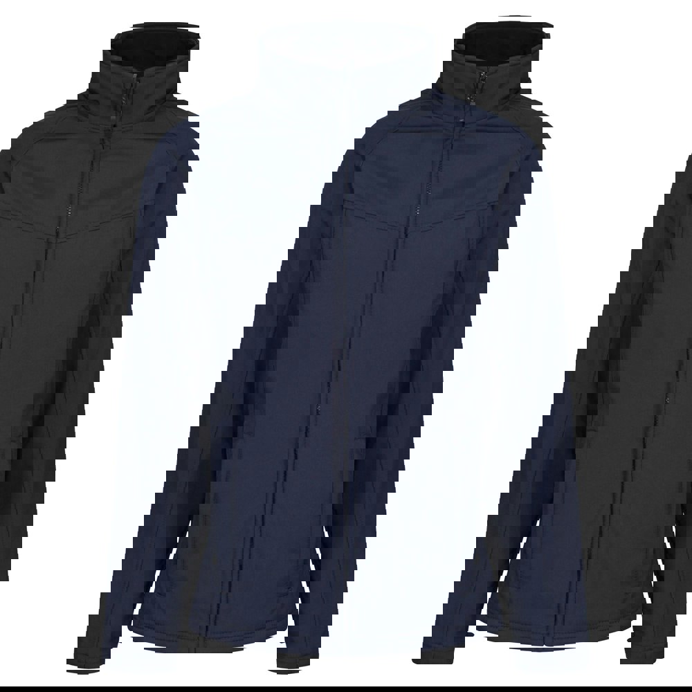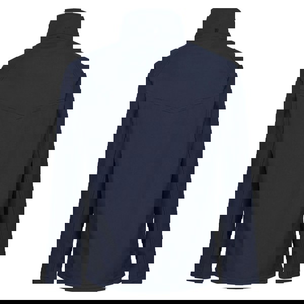 This men’s soft shell jacket is made from 96% polyester and 4% elastane, with a double-layer, fleece-backed woven fabric. Finished in a plain navy design, it includes panel detailing alongside a back yoke and front yoke, plus a cut-out label for a clean interior finish.