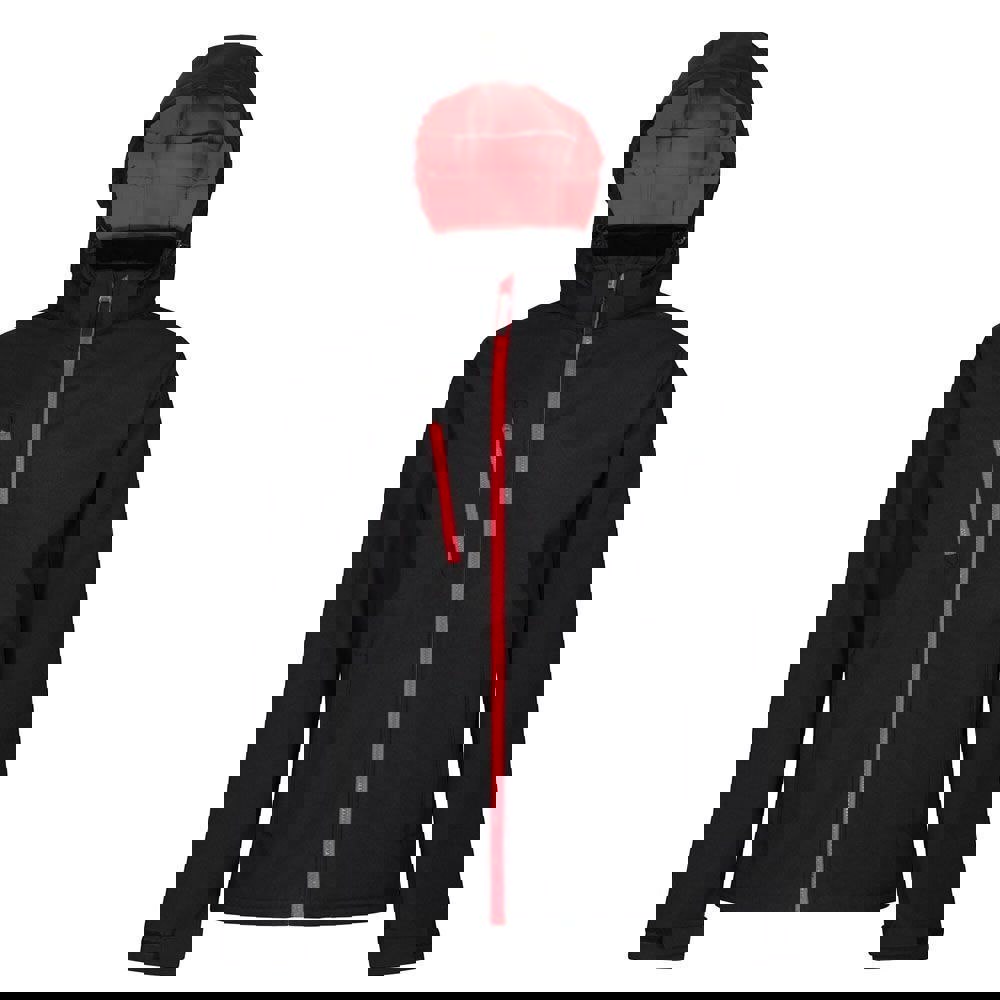 This men’s Venturer three layer soft shell jacket from Regatta is made from microfleece, polyester and woven fabric in a plain finish. It has a regular fit and regular length, with a high-neck and a grown on hood for added coverage. A full zip fastening and chin guard complete the front, while the cut out label keeps the inside finish clean.