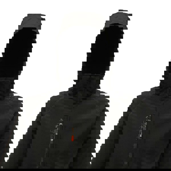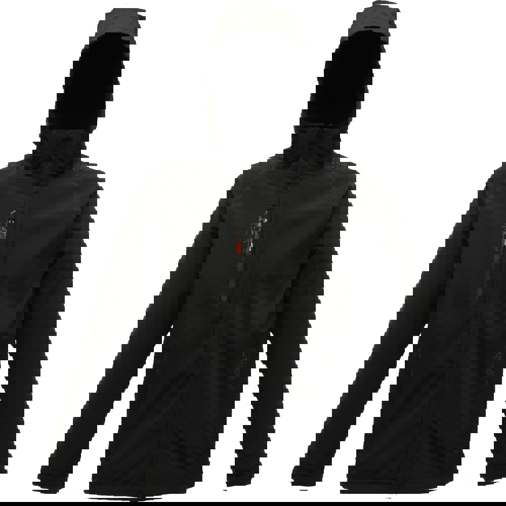 This men’s softshell jacket is made from warm backed softshell fabric with a durable water repellent finish. The body is mesh lined and includes a concealed zip entrance in the lining for embroidery access.
