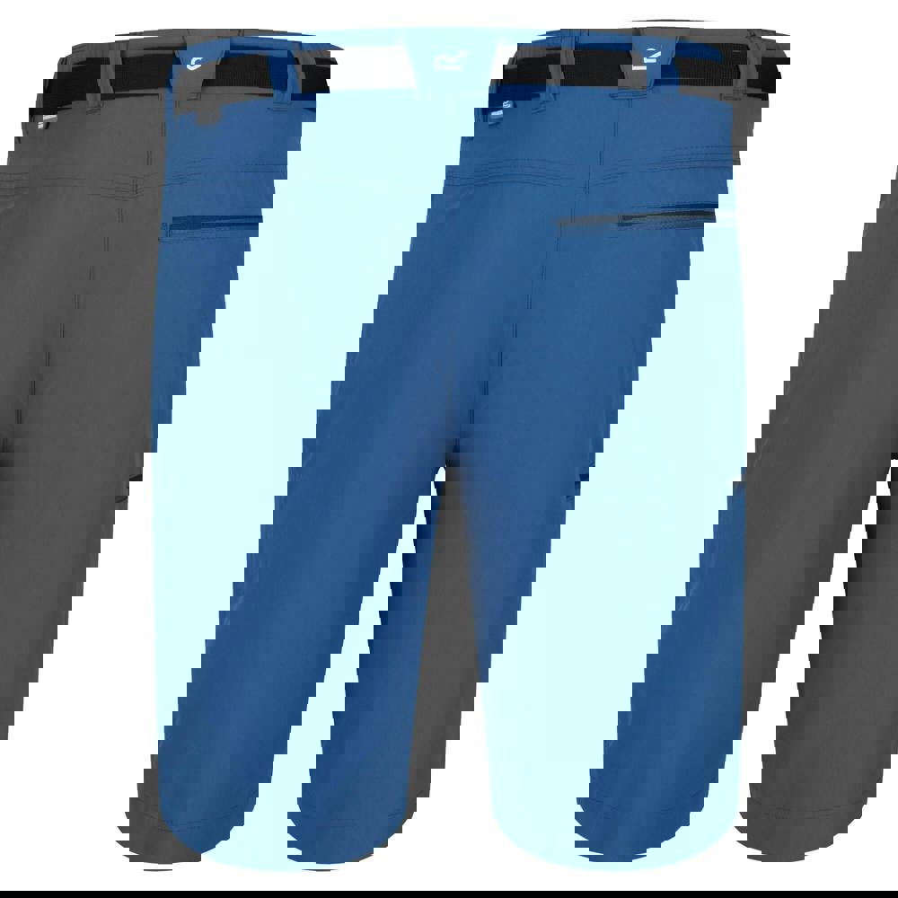 Regatta Xert III stretch shorts in Dynasty Blue, made from 90% polyamide and 10% elastane. The 4 way stretch fabric is lightweight and breathable, with Isoflex technology, a DWR finish and quick dry performance. An ergonomic, precision fit is paired with a part elasticated waistline for added comfort in active wear.