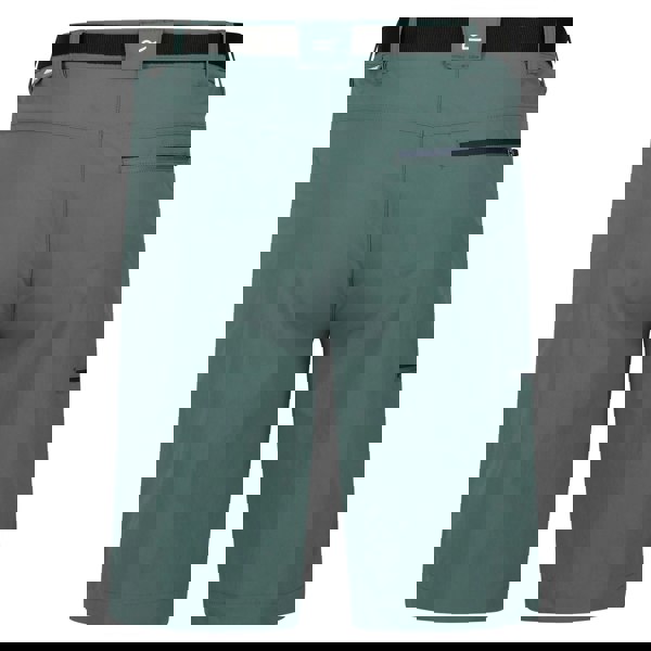 The waistline is part elasticated and includes belt loops plus a detachable webbing belt. Storage is arranged with two side pockets and a back pocket, with a zipped pocket included. A button and zip fastening completes the clean, practical design. The fabric is lightweight and breathable, with Isoflex technology, a DWR finish, quick dry performance and weather resistant construction.
