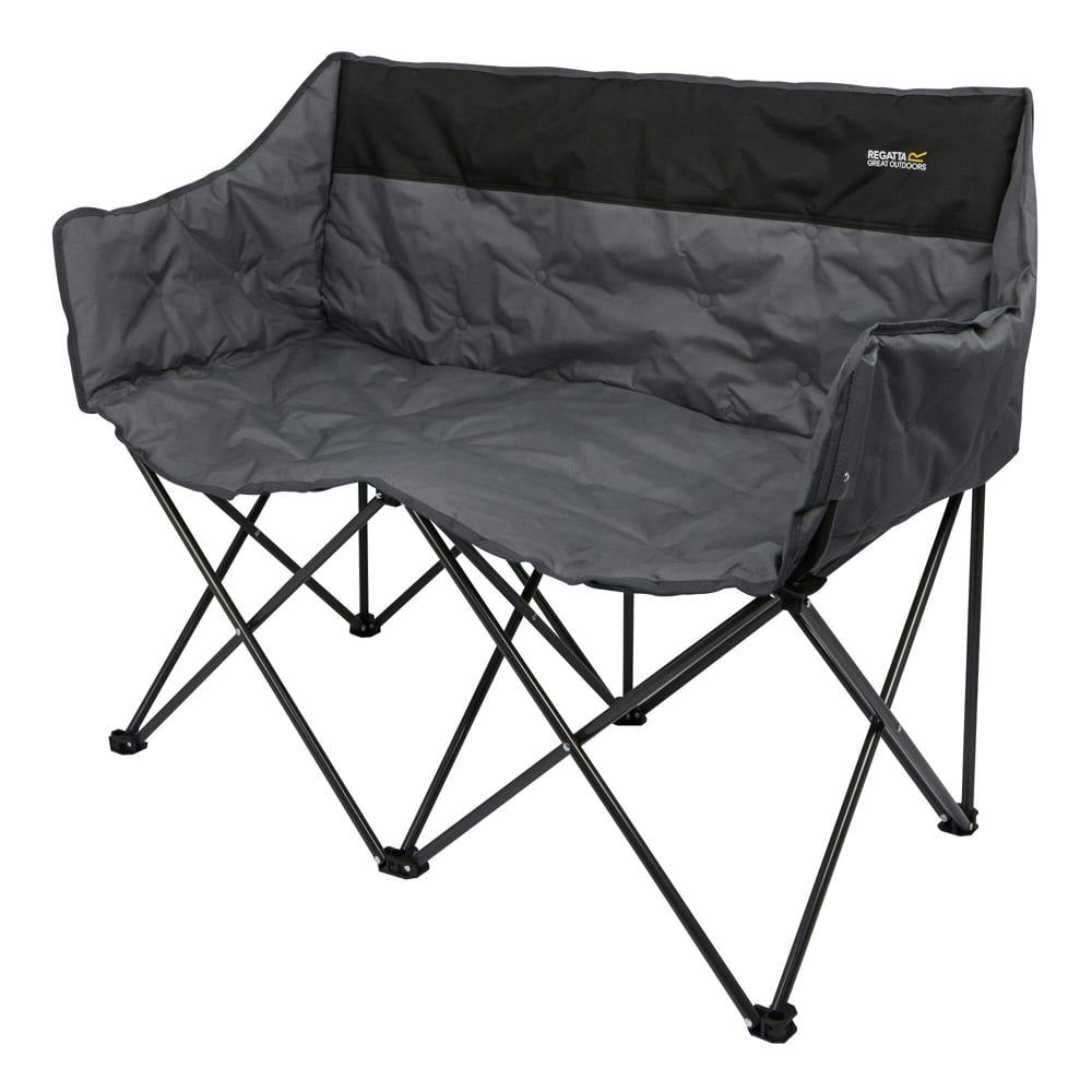 The Regatta Navas 2 Person Camping Chair is designed for comfortable outdoor seating for two. Finished in black/ebony with a colour block design and logo detailing, it offers a practical option for camping trips and other outdoor downtime.