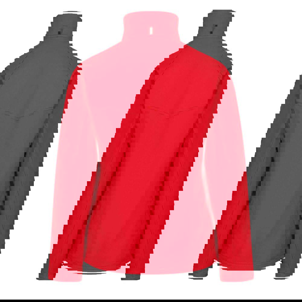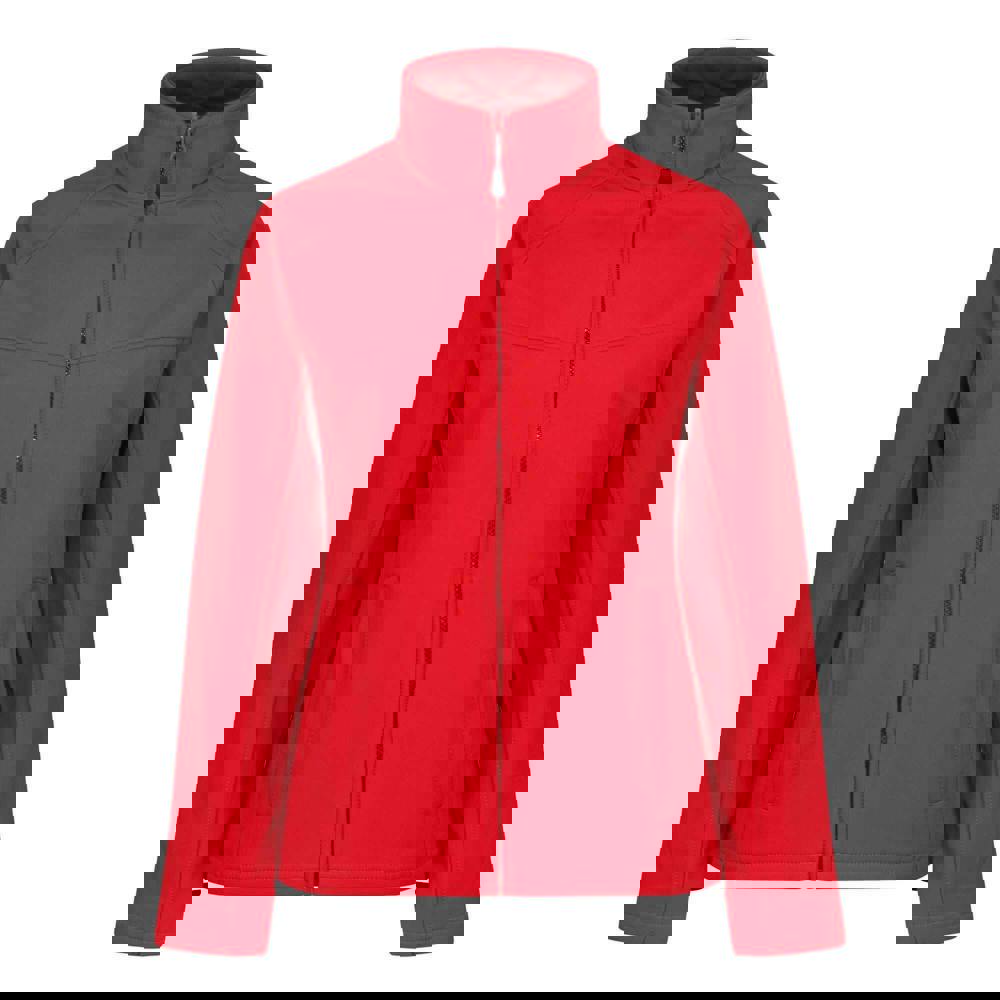 Regatta Professional Ladies Uproar softshell jacket in classic red and seal grey. Made from a soft-touch, lightweight stretch softshell with quick-dry and water-repellent technology. The plain design is finished with a standing collar and long raglan sleeves for a clean, practical look.