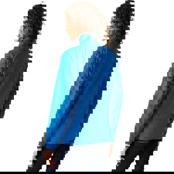 Warm backed woven stretch softshell fabric.