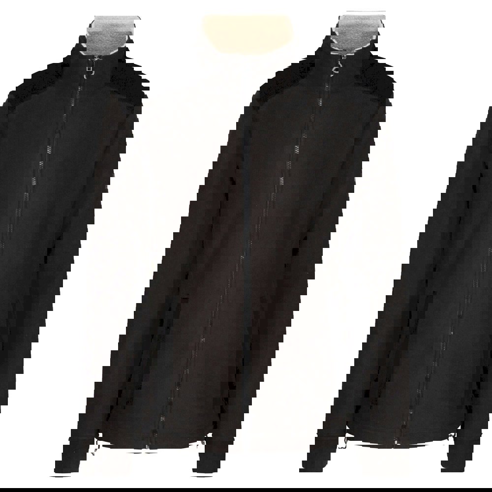 Built for everyday layering, this men’s full zip fleece jacket is made from 100% polyester and finished in black. The design includes a standing collar and long sleeves for a clean, practical silhouette. A logo detail and elbow patches add definition, while the full zip fastening keeps the front neat and easy to wear.