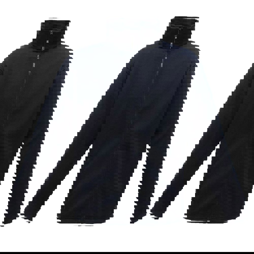 This men’s full zip fleece jacket is made from 100% polyester Symmetry Fleece with an anti pill finish and a 350gsm fabric weight. The plain navy design is finished with a standing collar with taped detailing and long sleeves with fleece cuffs.
