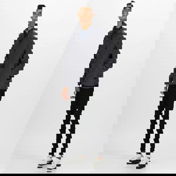 It fastens with a full zip and is detailed with a standing collar with taped neckline. Long sleeves and fleece cuffs provide a consistent finish, while twin needle stitching adds a neat, structured look. Two front pockets offer practical storage, and the hem adjusts with a drawstring for a secure fit.