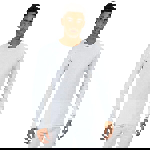 This men’s long-sleeved thermal base layer is made from a 50% polyester and 50% cotton blend in brushed Coolweave fabric. The plain design and crew neckline keep the look clean and simple, making it suitable for layering under everyday clothing.