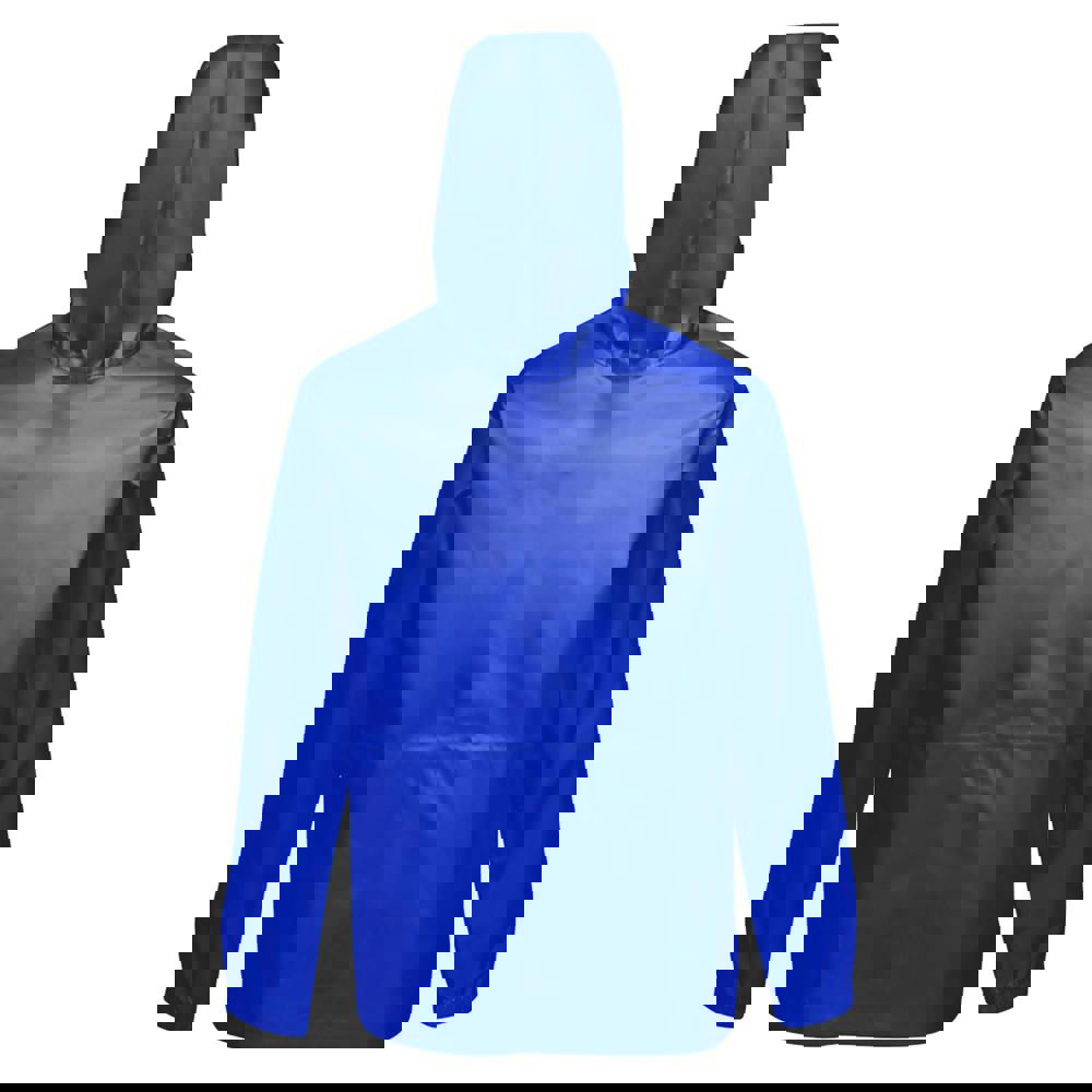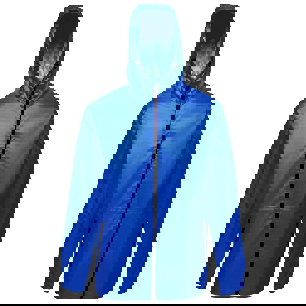 A hooded neckline includes an integral hood with a toggle adjuster, while elasticated cuffs help keep the fit secure. Lightweight construction and taped seams support the jacket’s packaway design, making it easy to carry when not in use. Storage is provided by two lower pockets with side entry and zip closure, and the jacket fastens through the front with a full zip.