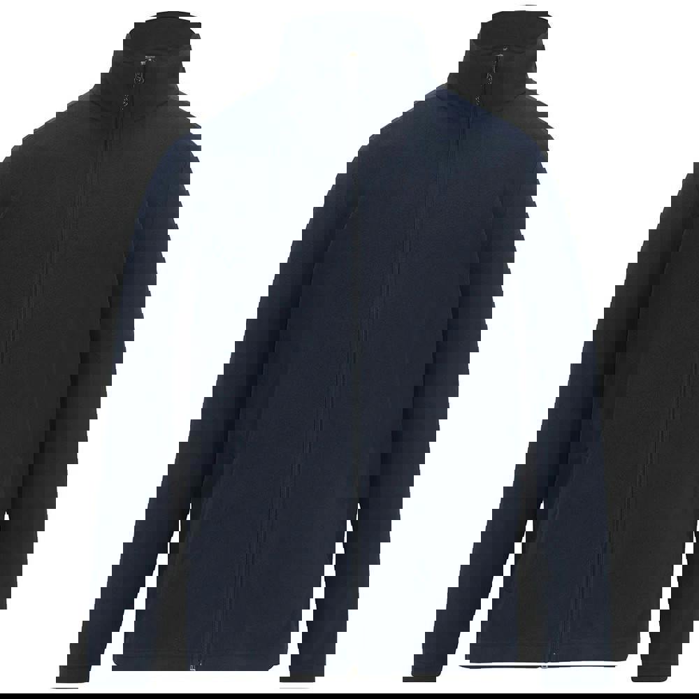 Regatta Professional Pro Ultra Light fleece jacket in navy, made from microfleece with a plain finish and 230gsm weight. The Symmetry fleece construction is anti-pilling, lightweight, moisture wicking and quick dry, with an easy-care handle for everyday wear. A standing collar and full zip fastening create a clean, practical profile, while long sleeves with open cuffs and an open hem keep the shape simple.